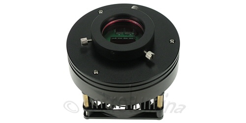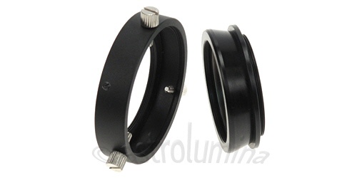 Adapter zur Rotation einer CCD-Kamera und zur Einstellung einer Verkippung und/oder einer Dezentrierung. Mit diesem Adapter können Sie fast jede Missstellung korrigieren.Beide Gewinde sind M42x0,75mm (T2). Das kameraseitige entsprechend ein Außen- und das teleskopseitige ein Innengewinde. Der Rotations-/Tiltadapter T2 kann somit an jeder x-beliebigen CCD-Kamera zum Einsatz kommen, welche über ein T2-Gewinde verfügt. Die drei im 120°-Winkel stehenden Rändelschrauben können Sie leicht lösen und den Adapter somit frei rotieren. Je nach dem wie weit Sie jede einzelne Schraube lösen, können Sie den nachfolgenden optischen Strahlengang zentrieren bzw. dezentrieren. Eine kleine spitz zulaufende Madenschraube ist für die Tilteinstellung zuständig. Je nach dem, wie weit diese Schraube in den Adapter hinein gedreht wird, desto stärker ist die Verkippung. Zur Tilteinstellung müssen Sie ganz leicht die drei großen Rändelschrauben lösen, gerade soviel, dass Sie den Adapter über die Madenschraube verkippen können.Ein UV-IR-Sperrfilter ist eingebaut.Das Auflagemaß (optische Weglänge) beträgt nur ca. 15,9mm und das Gewicht lediglich 70g.