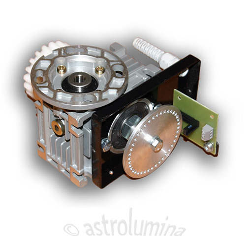 Hardware für die Positionsbestimmung der Kuppel-Azimutdrehung. Wird auf das Getriebegehäuse des ScopeDome-Motors der 3m-Kuppel montiert.